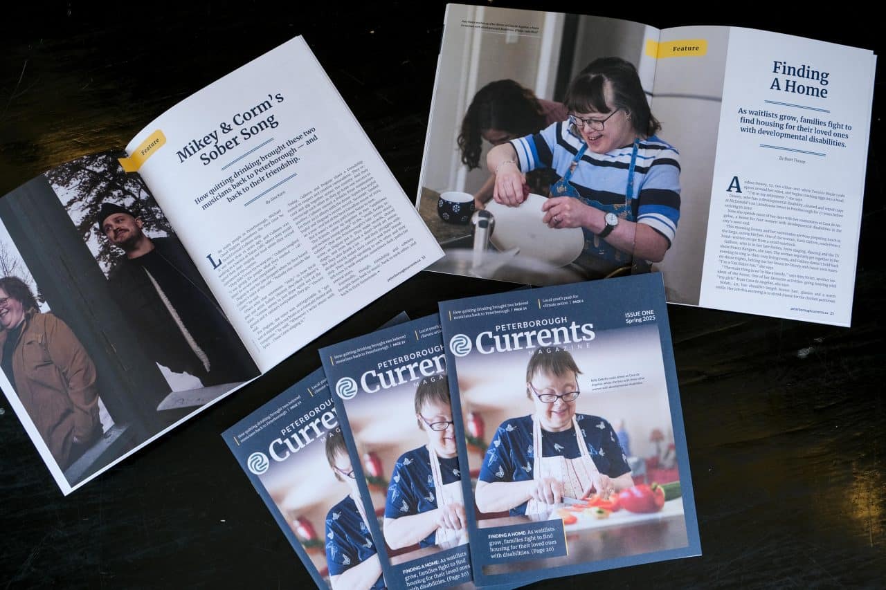 The magazine’s cover story dives deep into a pressing issue that is too often overlooked in Peterborough and Ontario: the housing challenges faced by people with developmental disabilities. “Ontario’s supportive housing waitlist is longer than ever, putting highly vulnerable people in increasingly desperate situations,” Currents reporter Brett Throop writes in the feature article. But Throop’s story doesn’t just focus on problems. He also examines solutions. He visits a home in Peterborough’s west end where four women with developmental disabilities have lived stably and safely for over a decade. And he follows a group of local families as they found their own non-profit and fundraise to build a duplex for their daughters with disabilities.