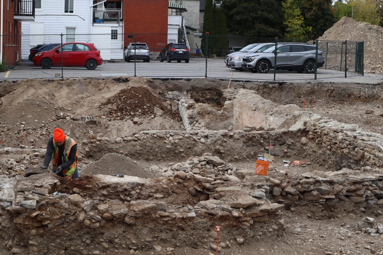 The discovery was made just beneath the parking lot of the former Kaye Funeral Home and Memorial Chapel, at 539 George St., a member of the archaeological crew at the site told Peterborough Currents last Wednesday.