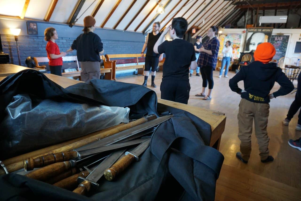 After cast members worked through the slaughter of Macduff’s wife and children, it was Banderob’s turn to cross swords with his on-stage nemesis.