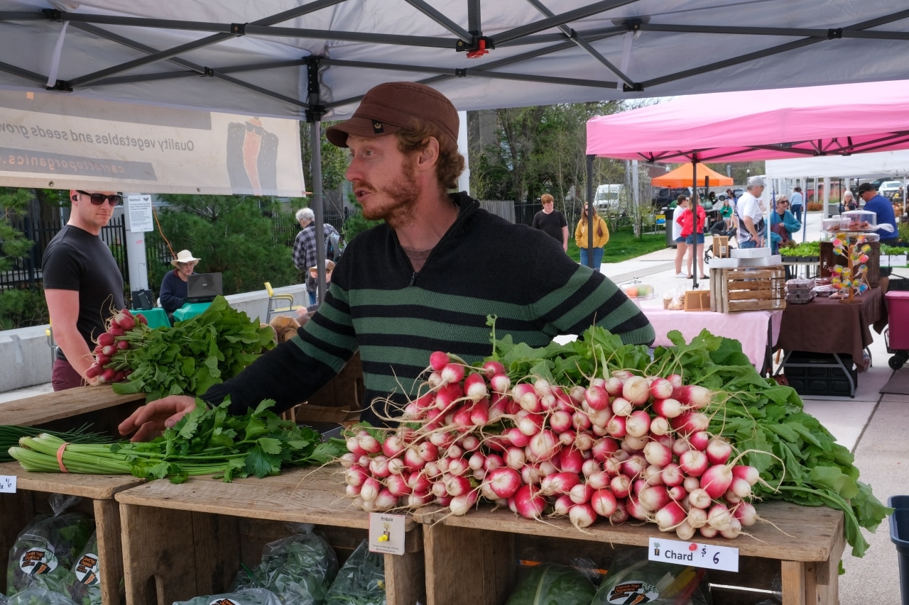 Josh Blank, owner of Carrot Top Organics with a stall at the downtown market, is a much newer addition to the local farming community. He joined the Peterborough Regional Farmers’ Market three years ago and has since expanded his business by growing vegetables in greenhouses year-round.