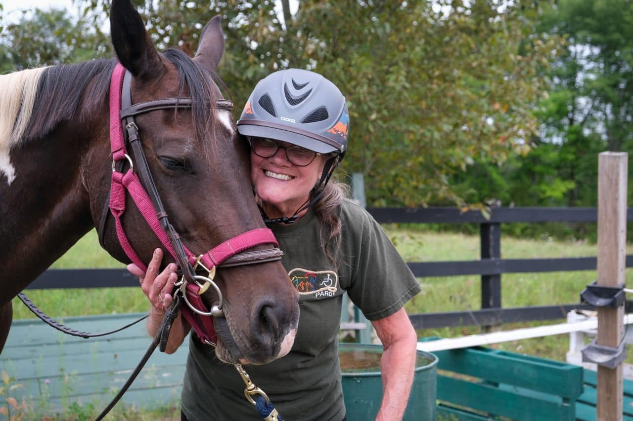“I’ve seen many of our horses nuzzle up to and enjoy the company of our riders as they start or finish their ride, or stand patiently while we get more challenging riders on or off their horses,” says Carruthers. “Horses are remarkably strong and steady constants for our riders.”