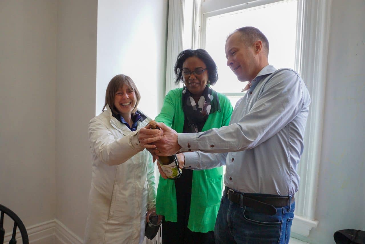 As folks gathered in Glebe House, they reminisced about the time they spent together in the building over the last 8 years, and some popped a bottle of champagne.