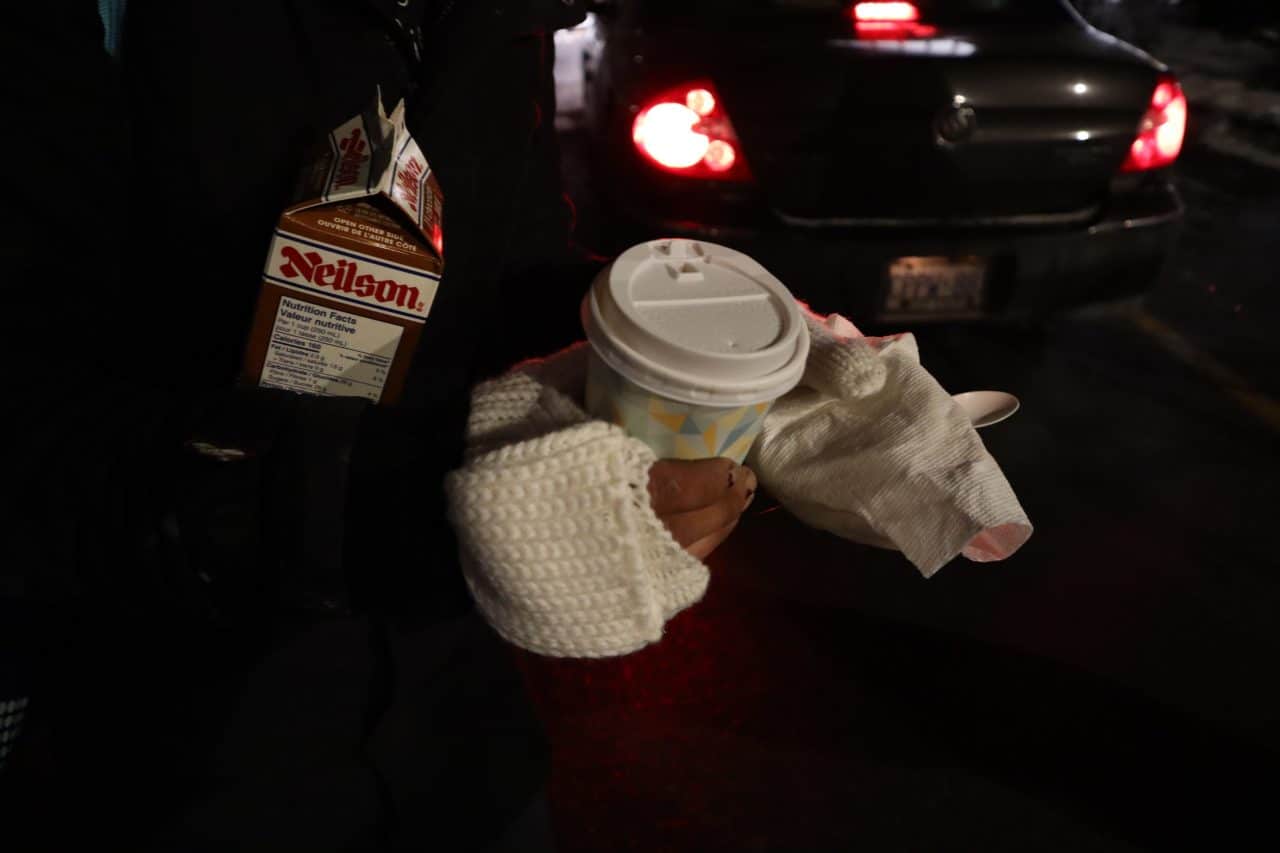 As the volunteers prepare to leave, a young woman arrives outside the shelter. The soup is packed away, but Roderick opens the van to pour her a cup. The woman says she knows she probably won’t get inside tonight since she got here late, but she’s grateful she caught Roderick and the other volunteers in time.