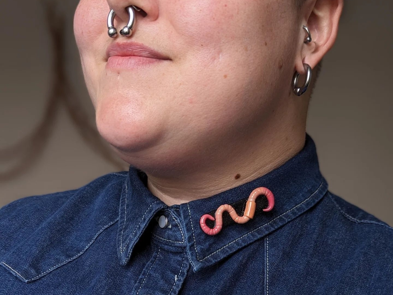 Now, they run a thriving artisan shop, Compost Craft, which offers paintings, drawings, sculptures, and jewelry pieces featuring worms, grubs, and other critters. They describe their art as “shining a light on the small and misunderstood and overstepped.”