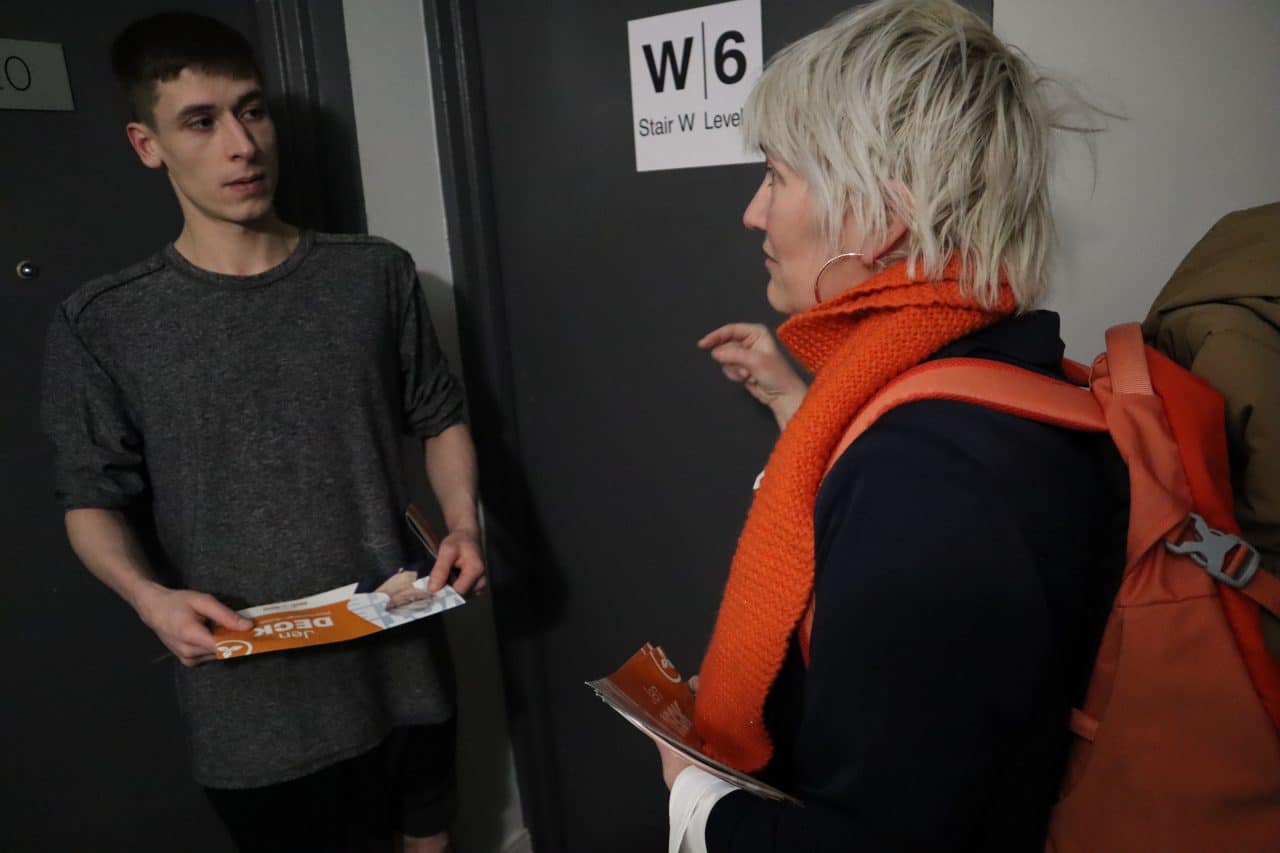 Fellow Trent student Connor Belbin voted PC in the last two provincial elections, but this time he’s campaigning for Deck and the NDP.
